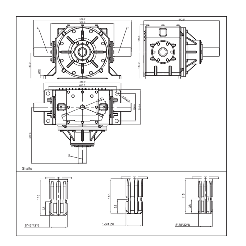 Skrzynia biegów wprowadza moc przez przednie pionowe pudełko maszyny lub ciągnik zwiększa prędkość obrotową i przesyła moc do wałka kruszącego przez wał i pasek. Dzięki dwustronnym wyjściu szerokość robocza maszyny może osiągnąć 3,5 metra do 6,5 metra. Jednocześnie może również zdawać sobie sprawę z funkcji wtórnego kruszenia, aby osiągnąć lepszy efekt kruszenia na uprawy. Maszyna miażdży słomę uprawną, a następnie poddaje recykling paczkami i ponownie ją używa lub bezpośrednio zwraca do standardu zasilającego lub bezpośrednio zwraca ją na pole, aby zgnijać, aby zwiększyć płodność ziemi. Ten typ skrzyni biegów będzie używany w urządzeniach kruszących różnych urządzeń, takich jak małe kwadratowe baletce, małe kwadratowe baletce, okrągłe balerty, maszyny powrotne słomy itp. 33333